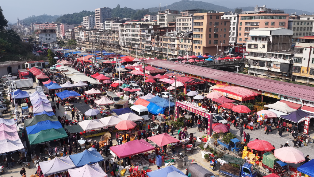 一些南方地区称村镇市集为“圩”。东田镇“赶圩”的历史悠久,至今已延续400多年。一位摊主告诉记者,“农历每月逢四逢九的日子便是东田镇的赶圩日。年关前的集日人尤其多,大家都在热热闹闹地囤年货。”