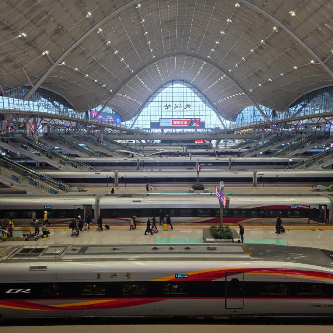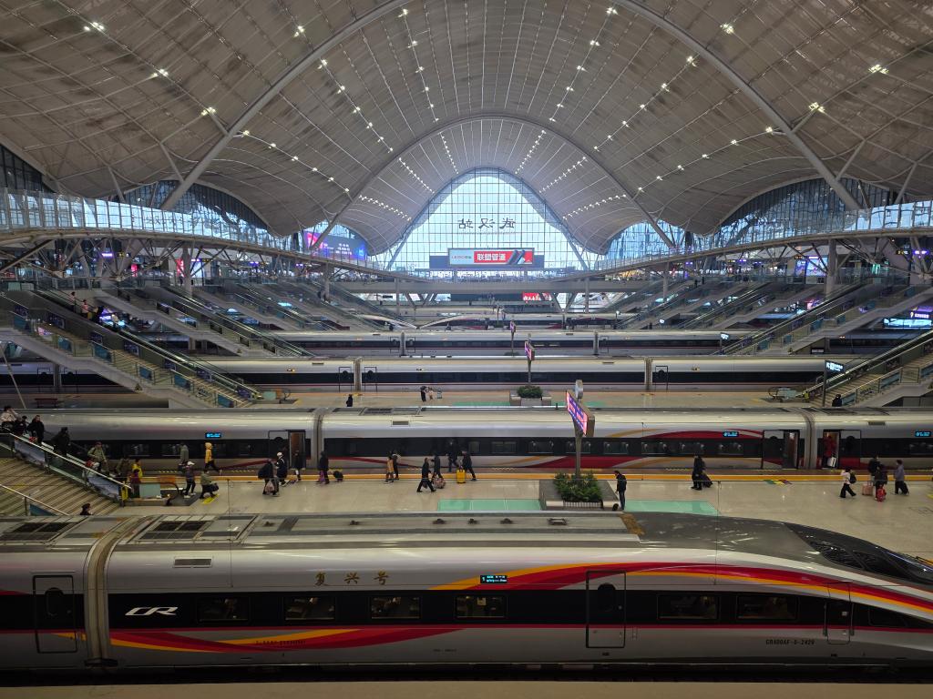 车窗外,华北平原褪去了冬日萧索,广袤大地在暖阳下延展,正静待春耕。复兴号高铁掠过中原腹地,车厢显示屏上稳定显示着时速350公里的数字。