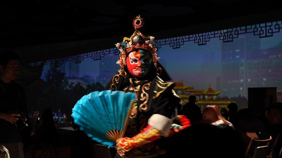 坚守非遗本真,兼顾国际审美,是这桌非遗盛宴圈粉的核心。更让外国友人称道的是,用餐的间隙,就是一场非遗技艺的沉浸式展演。“横、竖、撇、捺,一笔一画都很有讲究。”在投影屏前,安雅跟着指导学写毛笔字,还亲手体验了剪纸。川剧变脸的瞬间,餐厅里响起阵阵惊叹;少林功夫的刚劲表演,让安雅目不转睛。