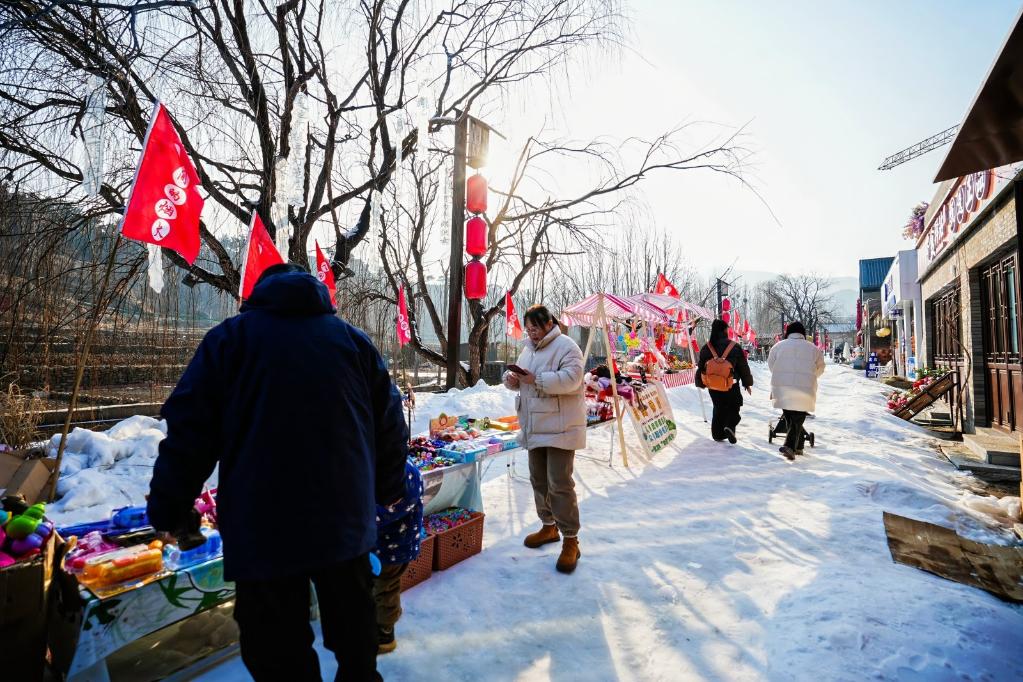 游客在王老村游玩,体验冰雪项目