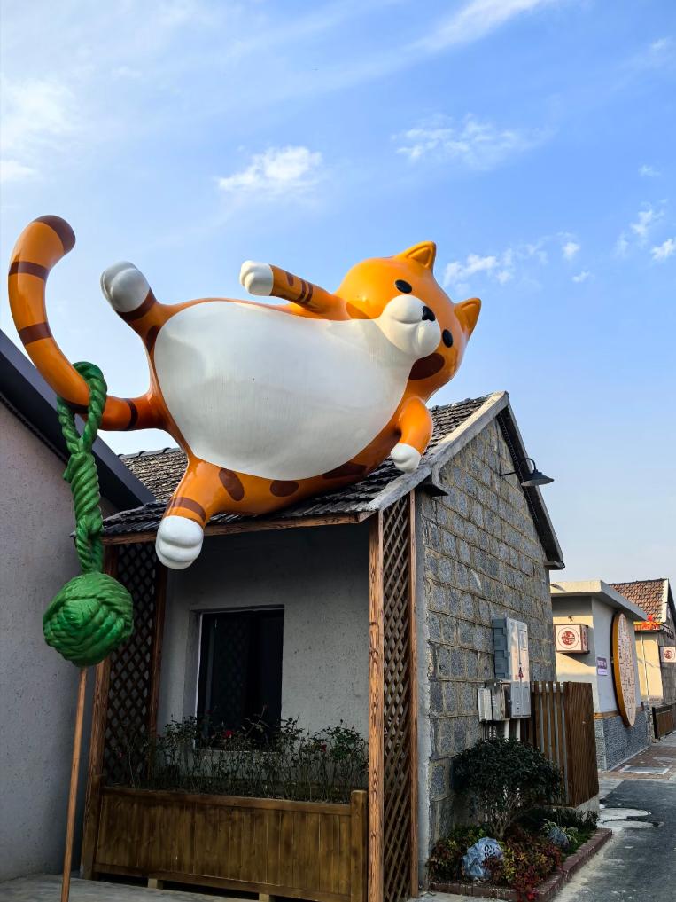 “遇山半里”乡村振兴片区“猫冬小院”民宿外的雕塑