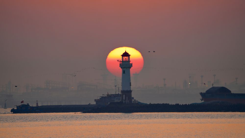 最佳点位、日出指数、拍摄指南……吴淞口看日出的攻略网上一搜一大把。天气预报说今天有雾,能不能看到啊?我心里打着鼓。一位摄影爱好者已经把机器架起来,镜头像天文望远镜。“这个角度可以拍到灯塔和太阳的叠影。”他说,“昨天雾大,今天肯定没问题。”