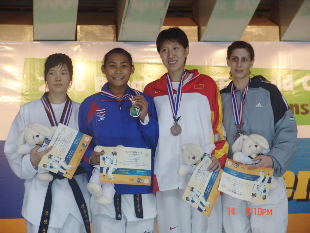2006年,泰国曼谷跆拳道世界杯赛场上,她对面站着的,是来自世界各国的跆拳道选手。