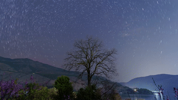 仲春时节,云南省大理白族自治州洱源县春花盛放。入夜,花海隐入暮色。皎洁的月光下,延时镜头里,星轨缓缓流转,银河倾泻而下,流光漫过花田,天上繁星与地上花海遥相辉映,织就一片烂漫春夜。