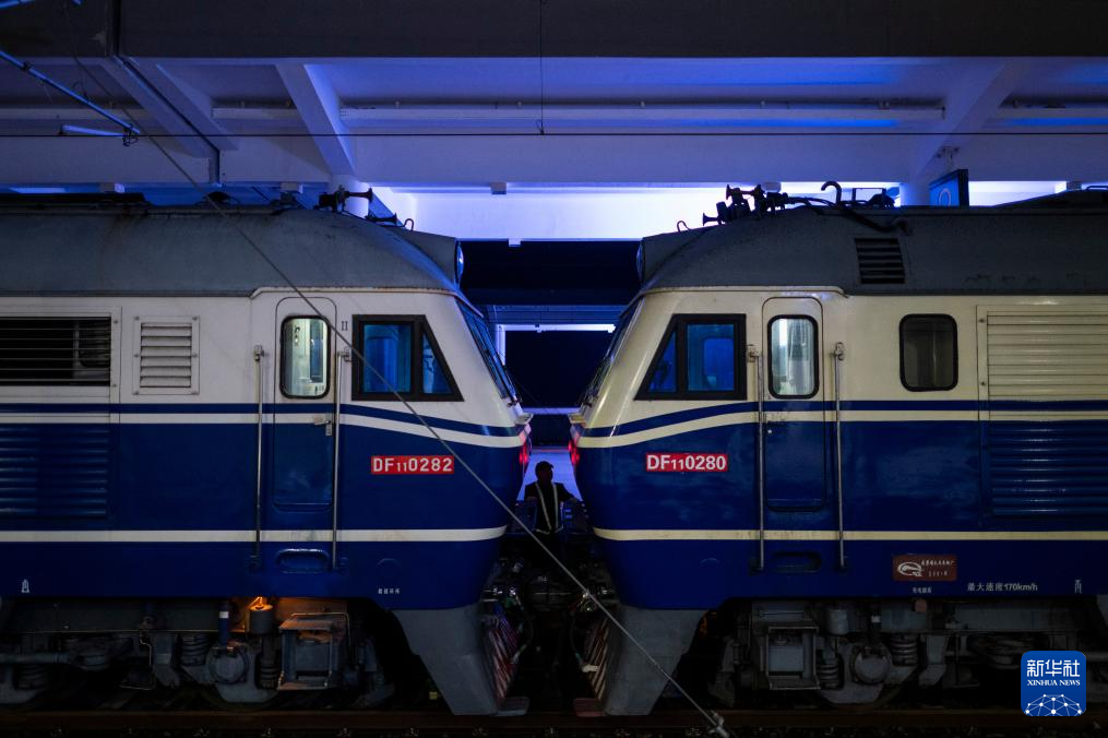 3月24日凌晨,检测列车抵达十堰东站进行编组作业。新华社记者 伍志尊 摄