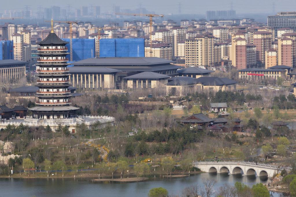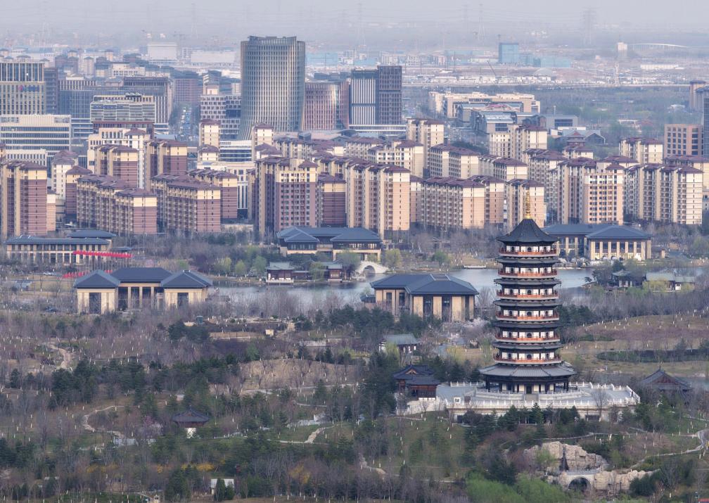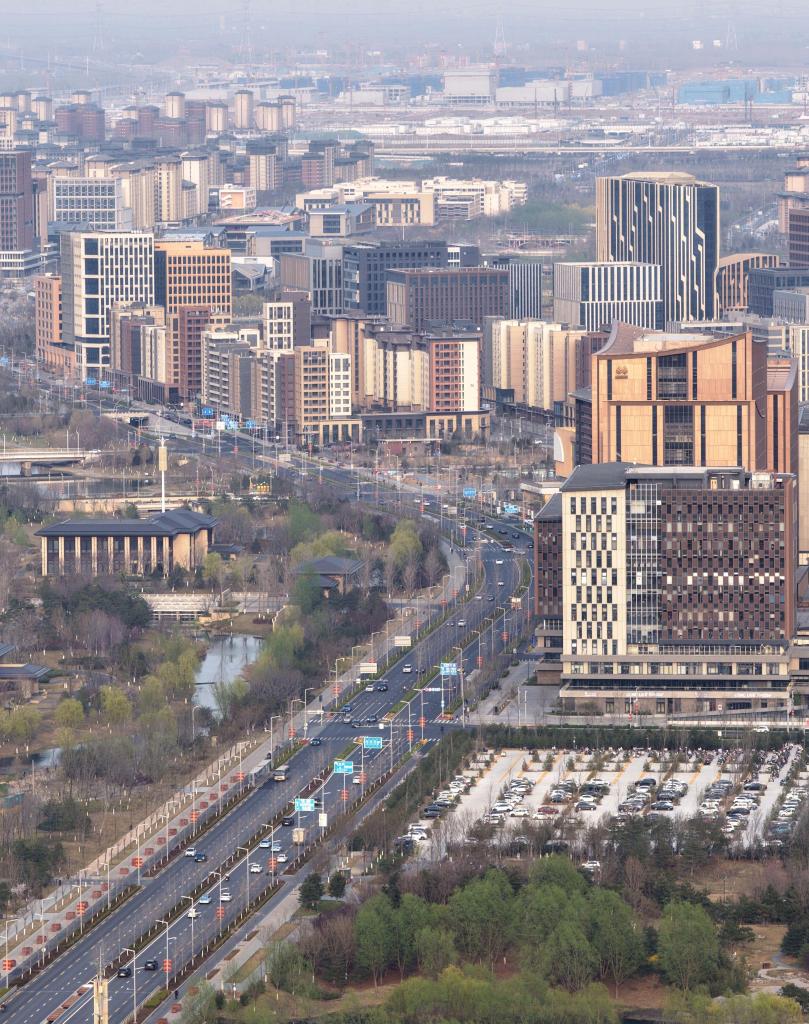 ↑3月27日拍摄的雄安新区春景(无人机照片)。