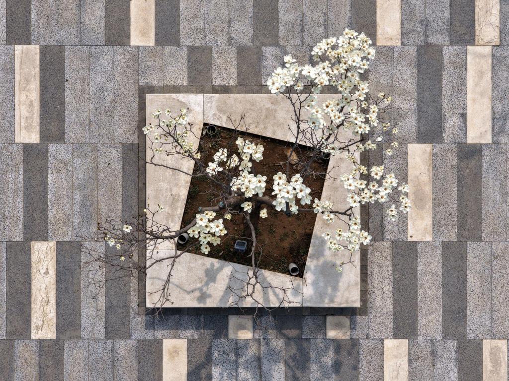 ↑3月26日在雄安新区拍摄的盛开的玉兰花(无人机照片)。