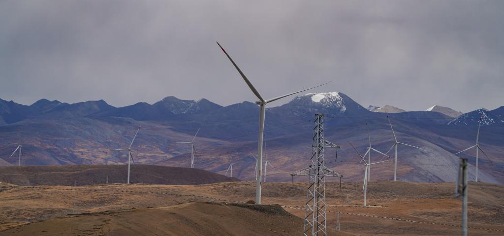 位于西藏日喀则市萨迦县的风力发电机组。新华社记者 晋美多吉 摄