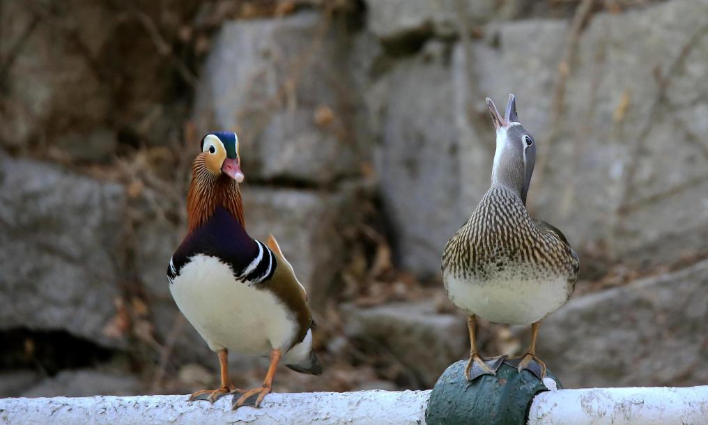 这是3月30日在哈尔滨市兆麟公园拍摄的一对野生鸳鸯。新华社发(张树 摄)