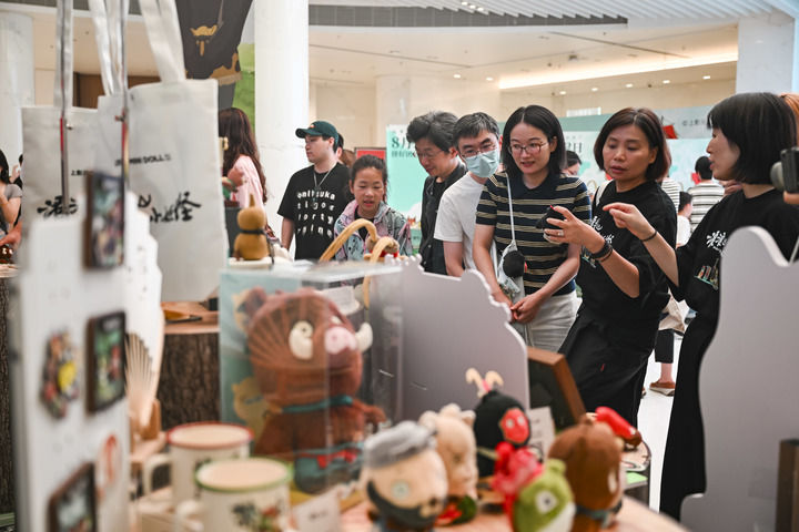 国产动画电影《浪浪山小妖怪》首映之际,影迷浏览电影周边产品。新华社记者 陈浩明 摄