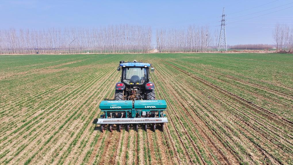 无人驾驶农机正在昌邑市种粮大户岳梦羲的麦田里作业。新华社发