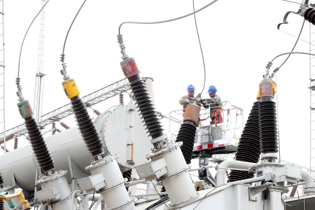 3月20日,电力工作人员在一座服务大数据基地的变电站检修。(受访单位供图)