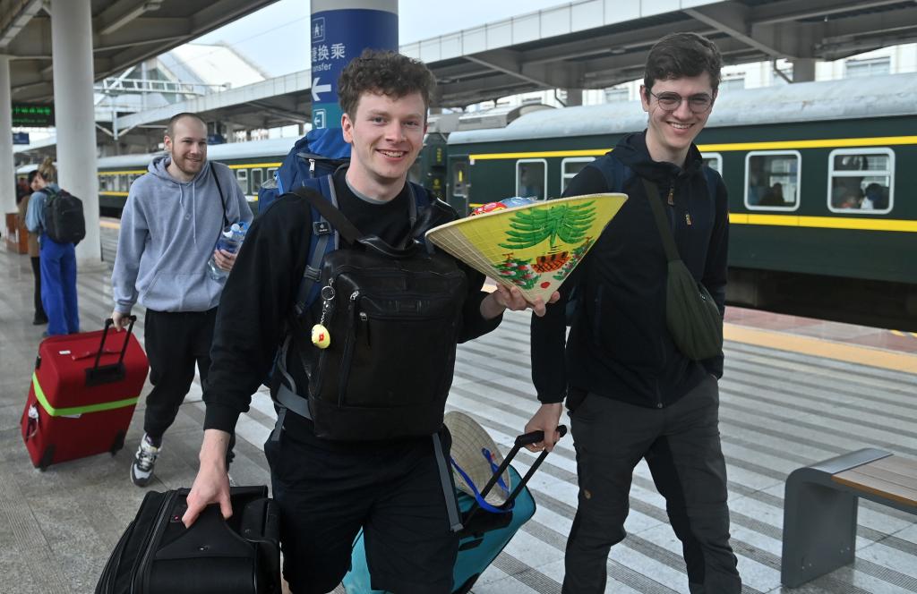 搭乘列车从河内到南宁的意大利乘客乔治说,相比汽车,乘坐火车可以在车厢内自由走动,行程轻松又省心,是许多国际游客的热门选择。