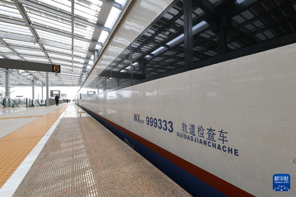 4月15日,检测列车即将驶出雄安站。新华社记者 邢广利 摄
