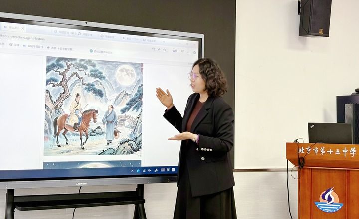 北京市第十三中学教师在展示人工智能赋能诗词教学的场景。新华每日电讯记者 赵旭 摄