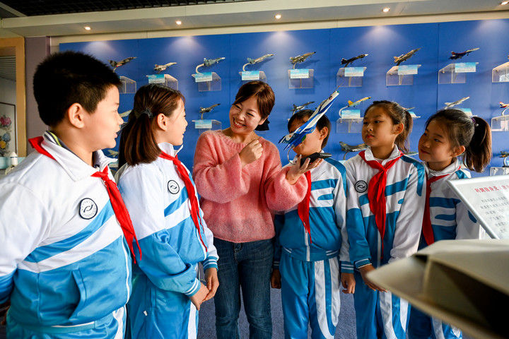 洪都小学的孩子们在老师讲述中触摸航空历史。