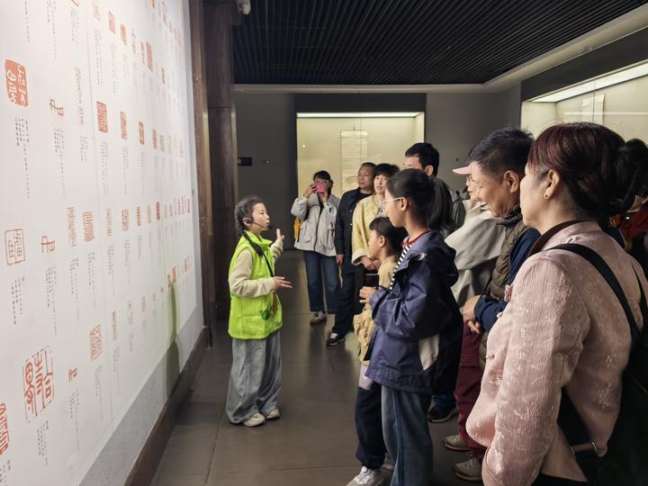 这样的情况也发生在那些小小的身影上。每到假期,一群被称为“小松果”的孩子会活跃在纪念馆各个角落,用稚嫩的声音,向游客讲解朱耷的故事。他们是“小松果”讲解团的小志愿者,大多是小学三至六年级的学生。