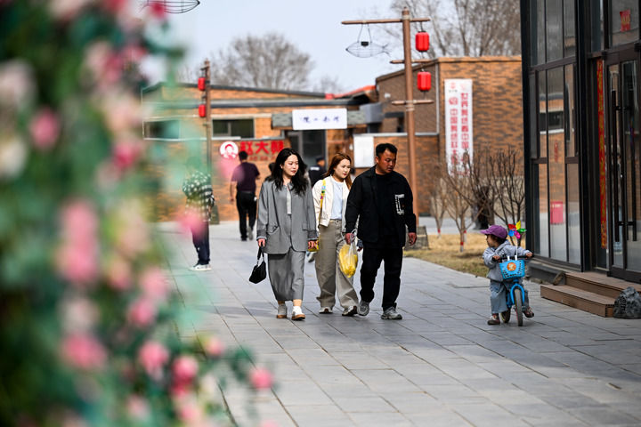 3月30日,游客在位于画匠营子村的“天下黄河第一村”景区游览。新华社记者 李志鹏 摄