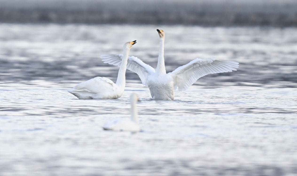 这是2025年12月2日在化隆回族自治县境内的黄河边拍摄的天鹅。 新华社记者 齐芷玥 摄