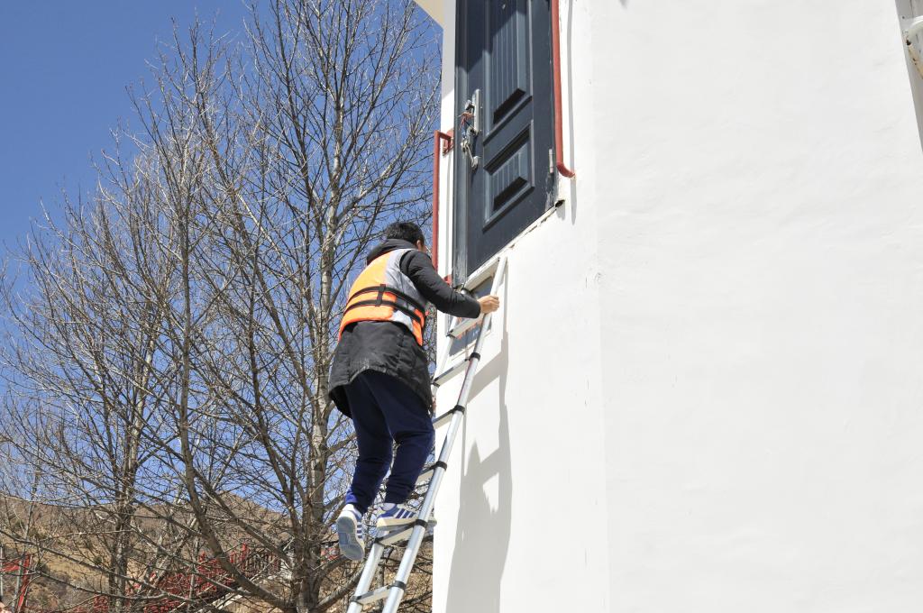 青海省玉树水文水资源测报分中心职工在隆宝滩雨量站点清洗雨量计。新华社发