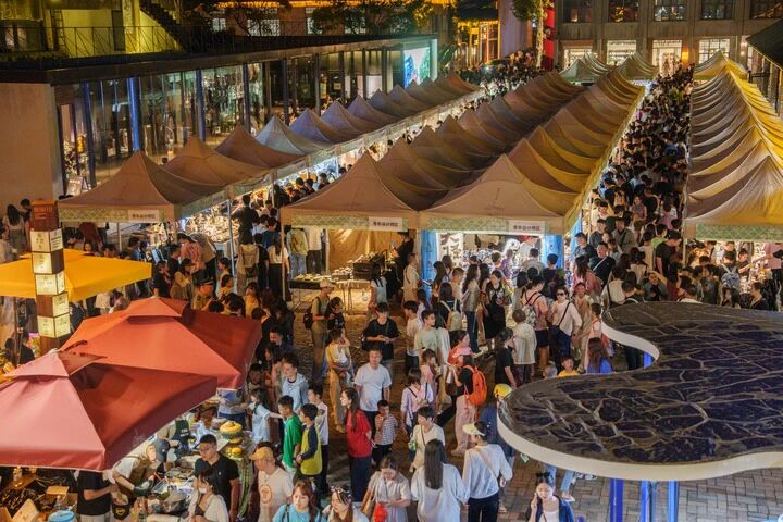 景德镇陶溪川夜晚文创集市人流如织。新华社发
