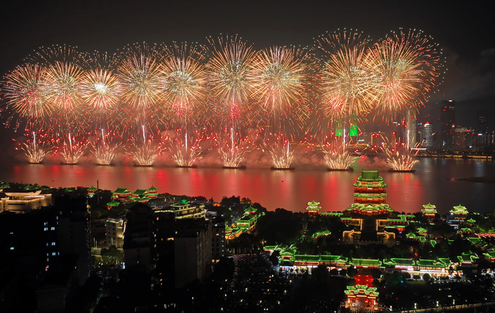 2025年南昌市国庆烟花晚会。新华社记者 万象 摄