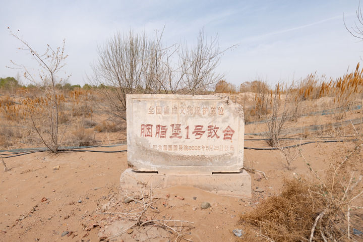 这是在高台县胭脂堡村拍摄的防沙工程。
