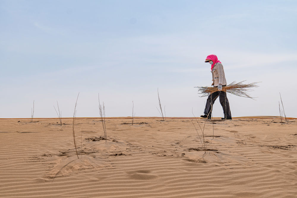 来自浙江省绍兴市的年轻女孩丁川,已连续两年来到民勤治沙植绿。她说:“在民勤沙区劳动,觉得自己很有成就感,为保护生态环境贡献了力量。”