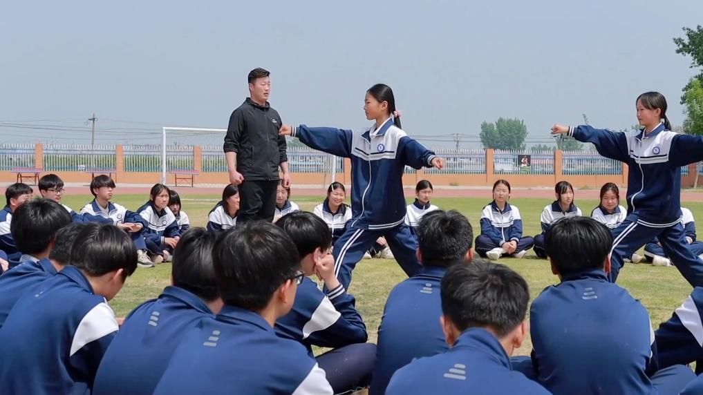 在“武术之乡”菏泽市巨野县,当地学校聘请专业教练,利用课后延时服务和“阳光大课间”开设武术课程,让学生们强健体魄。