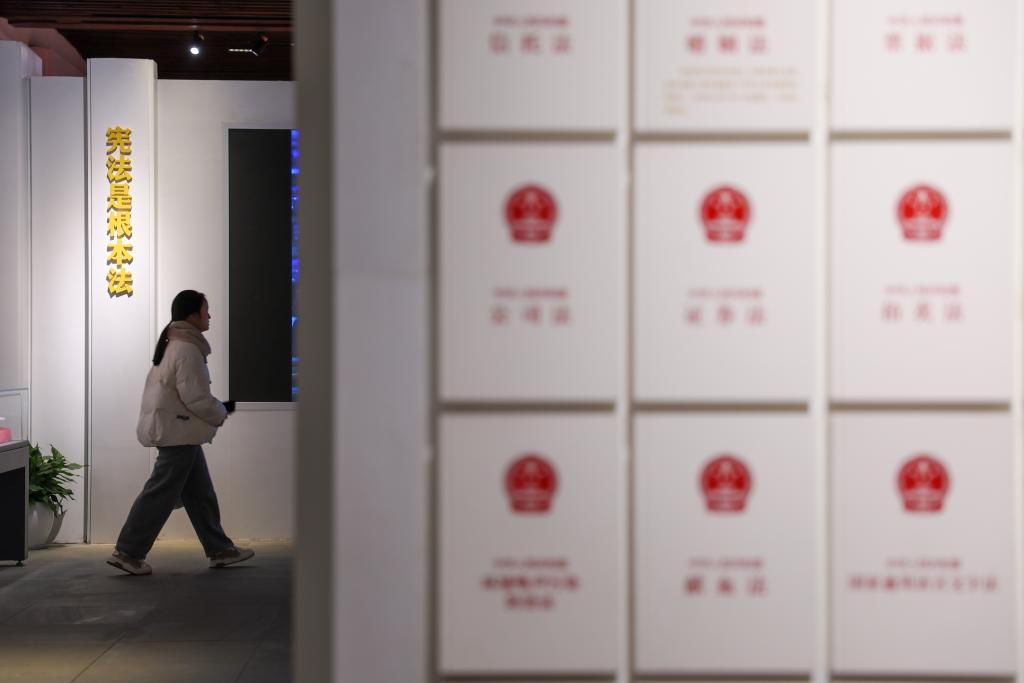 2024年12月4日,观众在“五四宪法”历史资料陈列馆栖霞岭馆区参观。新华社记者 江汉 摄