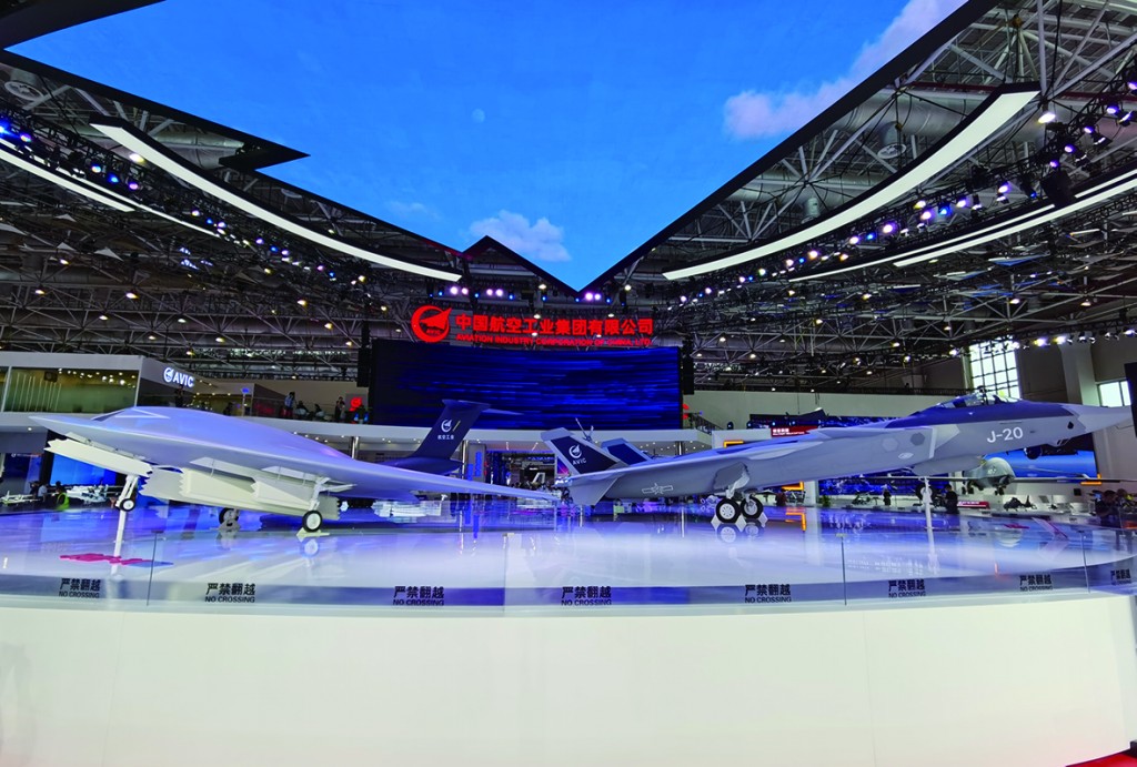 航空工业展台上的攻击-11与歼-20组合。 张海潮摄