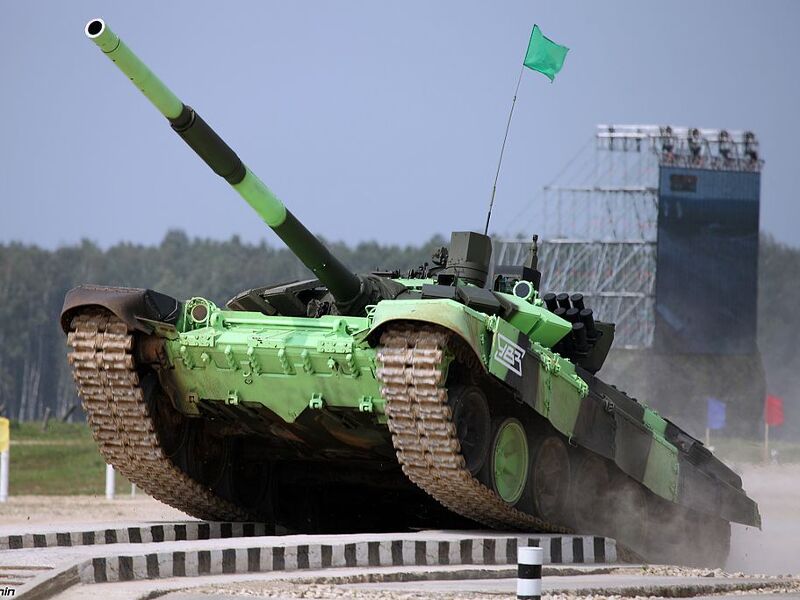 参加“坦克两项”大赛的俄军T-72B3M主战坦克