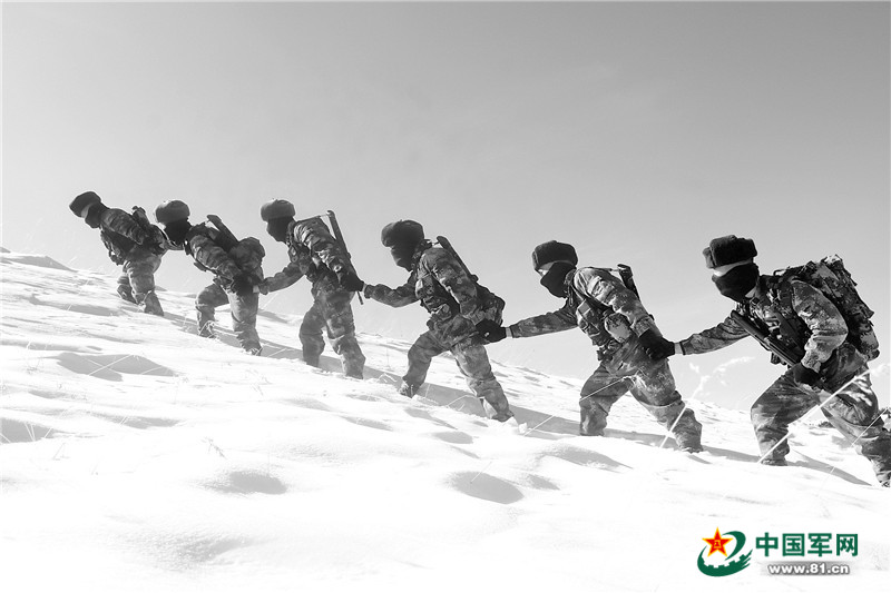 通常,巡逻车把官兵送到山下临时停车点。下车列队,他们沿着70度的陡坡向山顶奋力攀登。