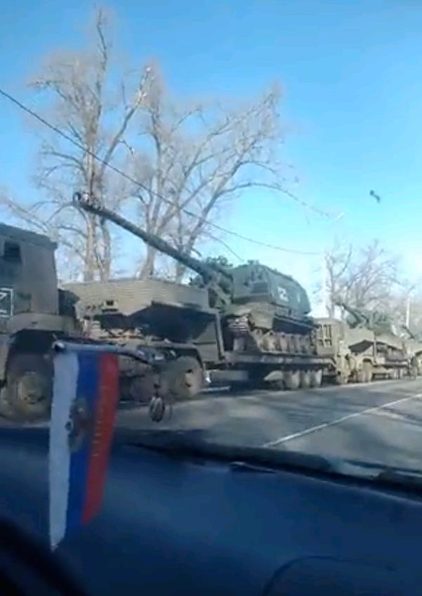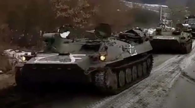 在地面战场,老司机粗略统计了一下,社交媒体透露的各种视频和照片显示,俄军至少动用了包括T-72、T-80和T-90系列主战坦克,2S3式、2S19式152毫米自行榴弹炮,“龙卷风”远程火箭炮、MT-LB装甲车和多型步兵战车。