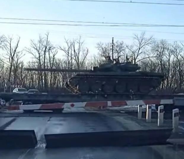 而另一段视频显示,俄军已向俄乌边境地区派出了最新的T-90M Proryv-3主战坦克,它大量采用新一代T-14主战坦克的技术,堪称俄军现役坦克中的最强型号。