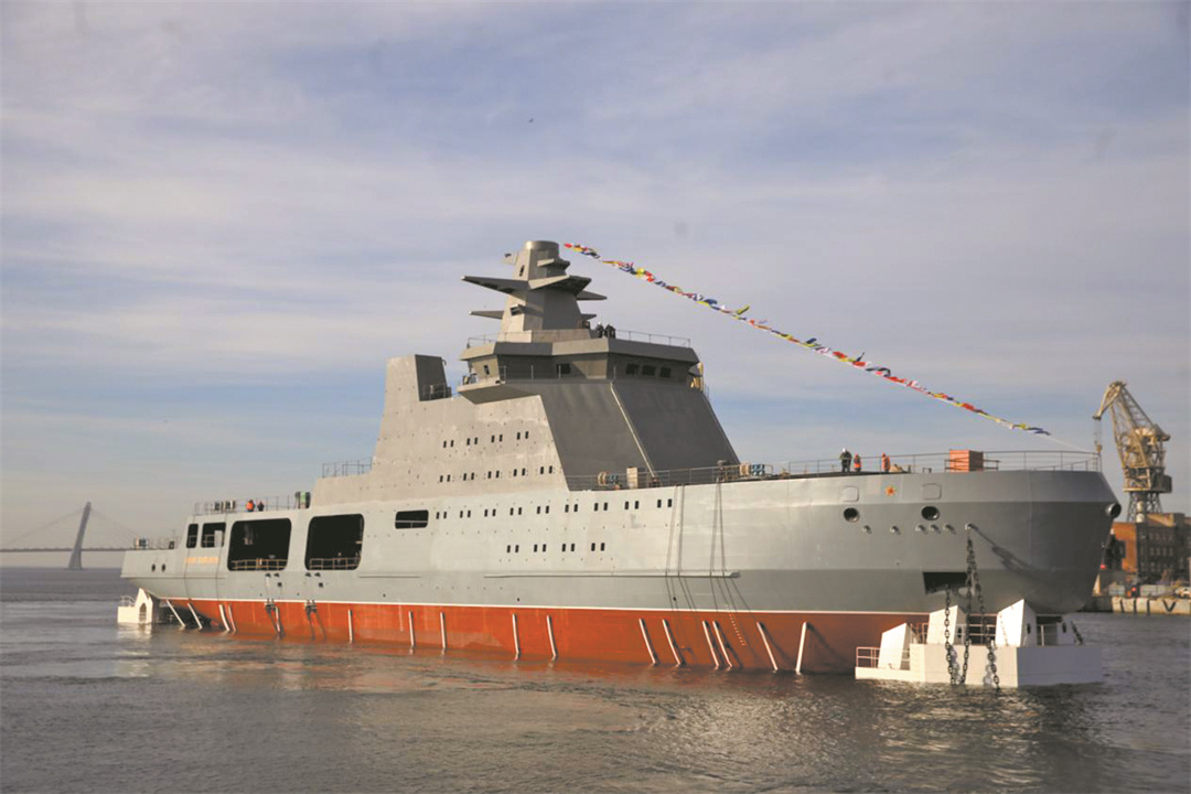 四是模块化,多功能化倾向日益明显。当前破冰船的建造广泛采用模块化技术。俄罗斯领袖级破冰船作为世界最新型核动力破冰船,采用了“开放船艉”的新理念,将破冰船视作海上平台而并非传统意义上的专业化作业船。其开放式船艉,可依据任务需要搭载不同作业模块,其中包括反潜装置、导弹、火炮以及无线电或潜水设备等特种集装箱模块,能够快速完成多种功能之间的转换。