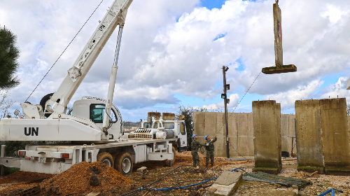 近日,应联合国驻黎巴嫩临时部队(联黎部队)司令部请求,中国第22批赴黎巴嫩维和部队多功能工兵分队、建筑工兵分队派遣施工作业组,与维和友军联合援助加纳营完成T型防护墙吊装任务,有效提升了加纳营区的整体防护水平。