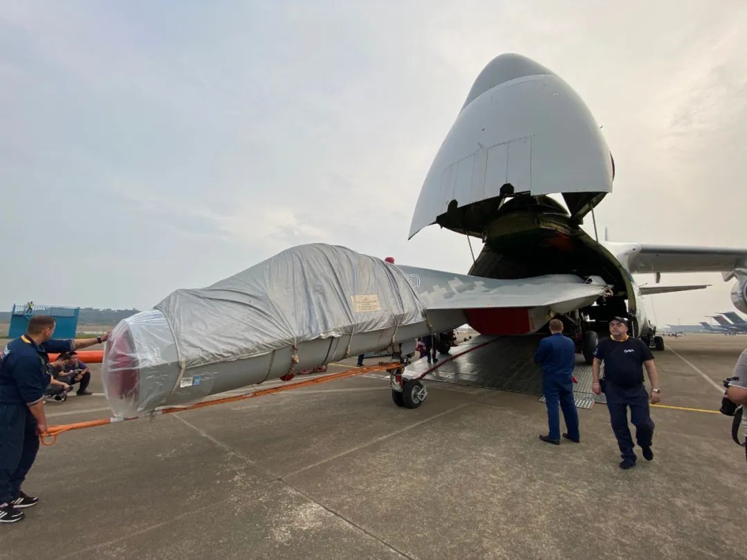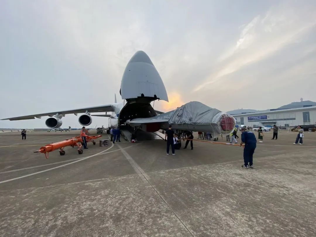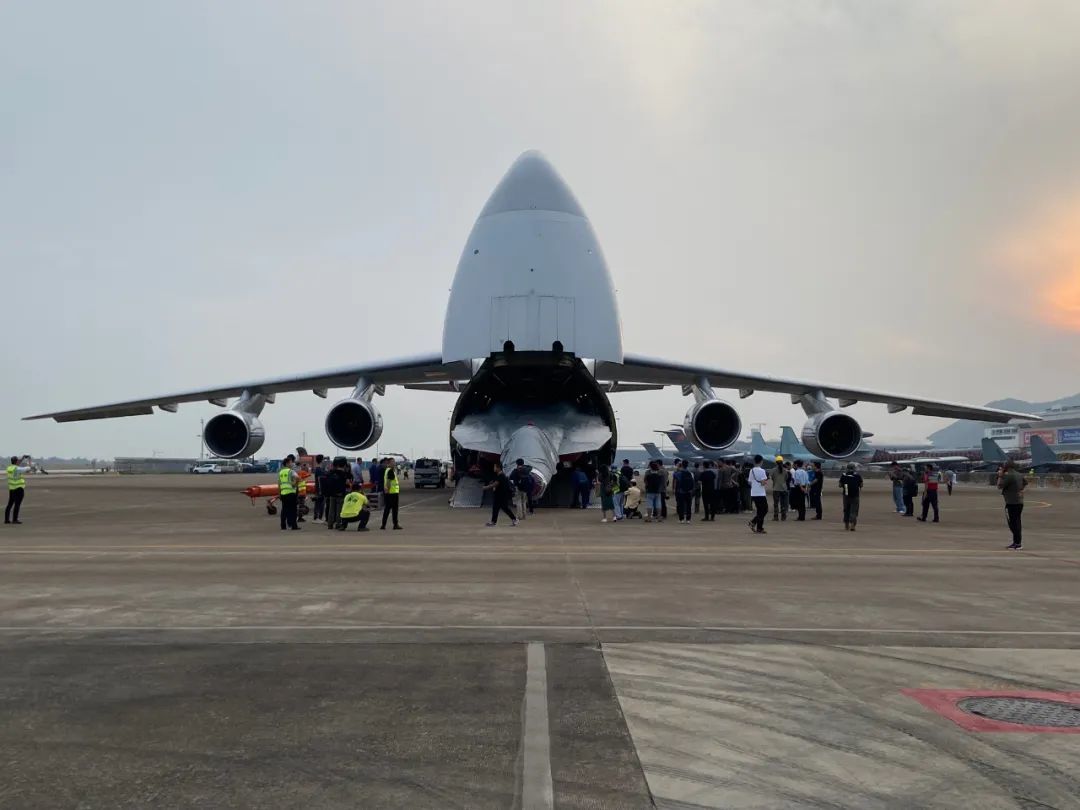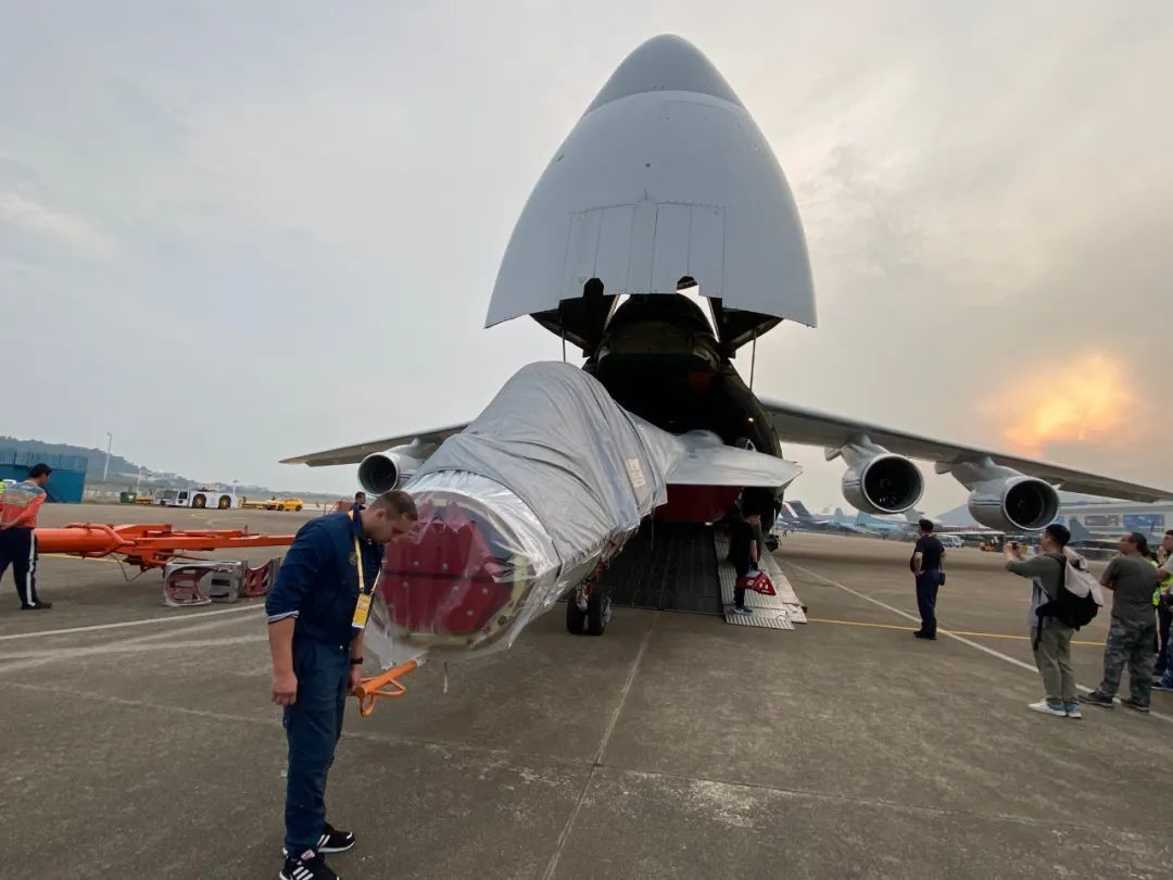 11月4日上午,俄罗斯一架安-124大型运输机降落珠海金湾机场,下午5时许,一架苏-57的静态展示机在这架安-124的机舱内现身。4日下午早些时候,另一架进行飞行展示的苏-57已抵达金湾机场。