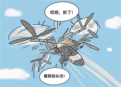 一方面是在无人机的组成、结构上做文章。无人机为了减重,常会使用很多轻质复合材料,抗冲击能力不强。一些弹丸的高速打击,就可以让它四分五裂。基于此,有的企业研发出反制型无人机,如波兰先进防护系统公司研制的“无人机截击机”,依靠其坚固的躯体和航速,直接去撞击目标无人机。无人机上的电子设备较多,防护力较弱。不少国家针对这一点,加快了对激光和微波反无人机系统的研制。一些此类武器已投入实战。无人机大多靠旋翼飞行,有的战场上已出现了一种反制型无人机,通过在无人机上捆绑棍子,实现对目标无人机旋翼的抵近和精准“绞杀”。无人机体形较小、飞行速度较慢,一些国家的企业为此研制出可抛掷绳网的反制型无人机,选准时机,就可将目标无人机收入“囊”中。