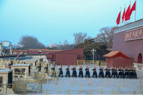 新兵王驰宇激动地说:“第一次登上观礼台观看升国旗,我内心无比激动,亲眼目睹这庄严的仪式让我感到特别自豪。”升旗仪式结束后,新兵们登上天安门城楼。庄严肃穆的古城楼,静静矗立在祖国的心脏,承载着厚重的历史与辉煌的文化。新兵们站在城楼上,迎着微风,心中涌起一股强烈的使命感与责任感。他们轻声交流着,眼神中满是对未来的坚定与憧憬。