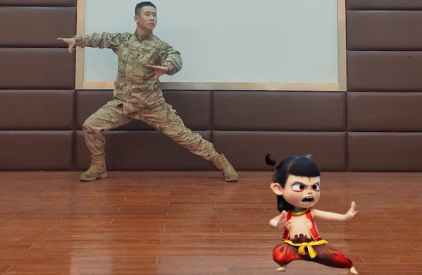 这个战士挺会“玩”,他和哪吒谁舞得好?-新华网