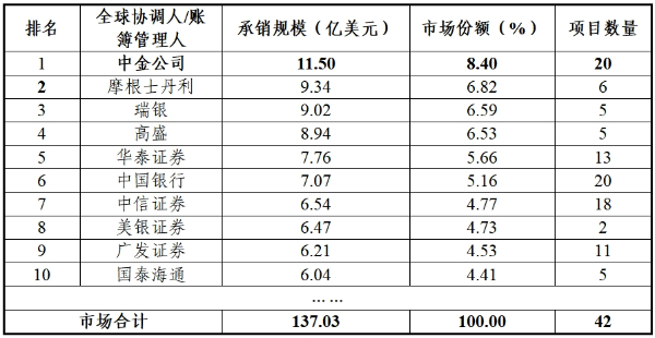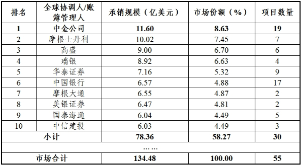 2025年以来,中资企业境外IPO势头向好。Dealogic数据显示,上半年中资企业境外IPO累计完成55单,募资规模合计约134亿美元。按承销规模排名,前十名中介机构共完成30单项目,承销规模合计约78亿美元,其中中资机构占得五席,中金公司以11.60亿美元承销规模、8.63%市场份额的显著优势位居榜首,主导了宁德时代港股IPO、三花智控港股IPO、海天味业港股IPO、霸王茶姬美股IPO等具有市场影响力的标杆项目。