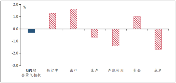 图表2:GPI综合景气指数与部分分项指数环比变化值