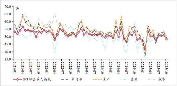 图表 2: GPI综合景气指数与部分分项指数走势