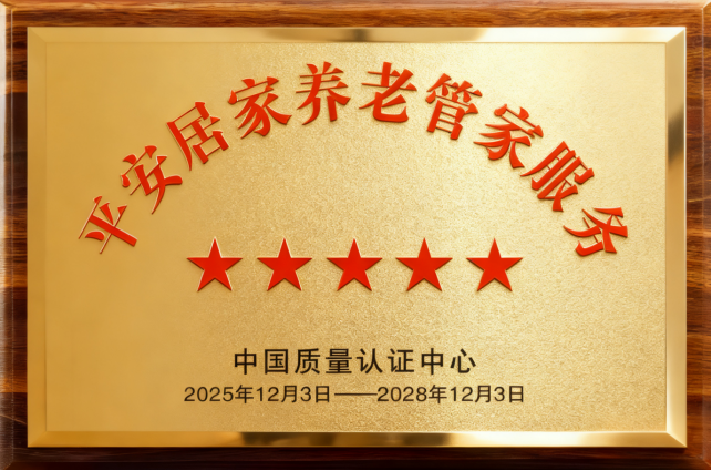 近日,中国平安旗下平安居家养老管家服务通过中国质量认证中心(CQC)权威评价,成为全国率先获得“居家养老管家服务”五星级评价的养老服务,证书编号为CQC20251129830-001,有效期至2028年12月01日。这一评价为国内居家养老行业高质量发展树立了标杆。