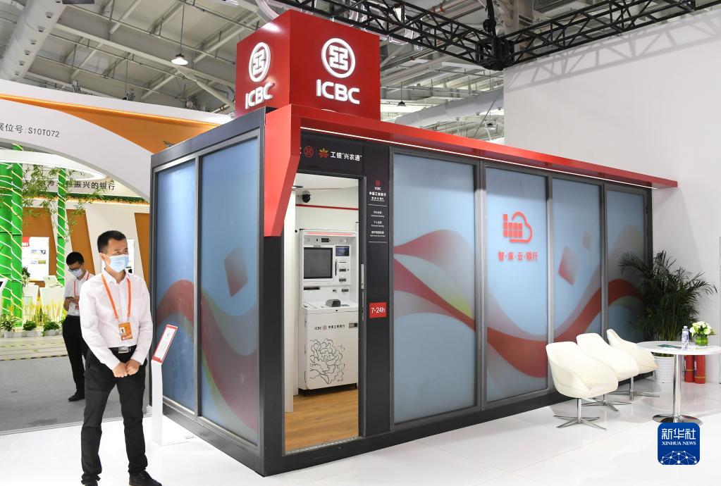 这是9月4日在2021年中国国际服务贸易交易会首钢园区金融服务展馆拍摄的“智·库·云”银行,它采用集装箱银行的形式,可实现农村县镇快捷运输、灵活部署。