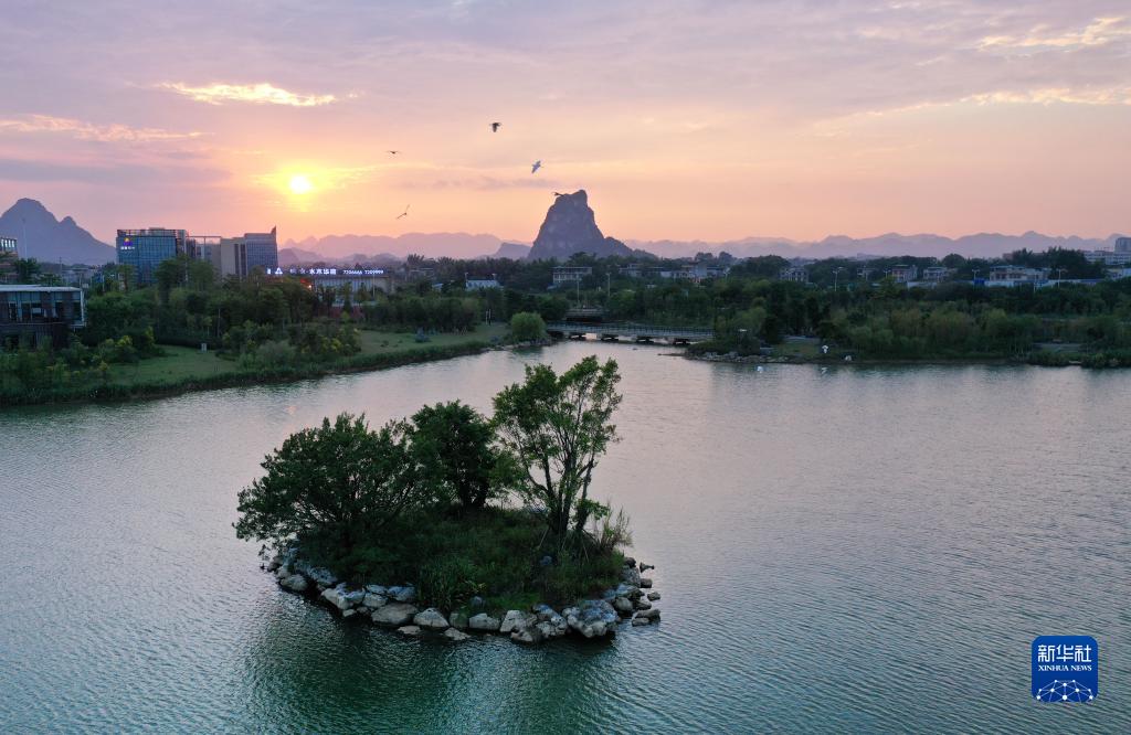 近日,不少鹭鸟飞至广西柳州市柳江区岜公塘湿地公园,形成城市里一道独特景观。近年来,柳江区不断加强生态文明建设及环境保护,自然生态环境持续改善。