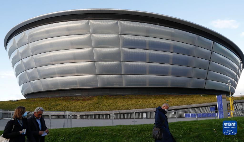 11月9日,人们从英国格拉斯哥联合国气候变化大会会场外走过。