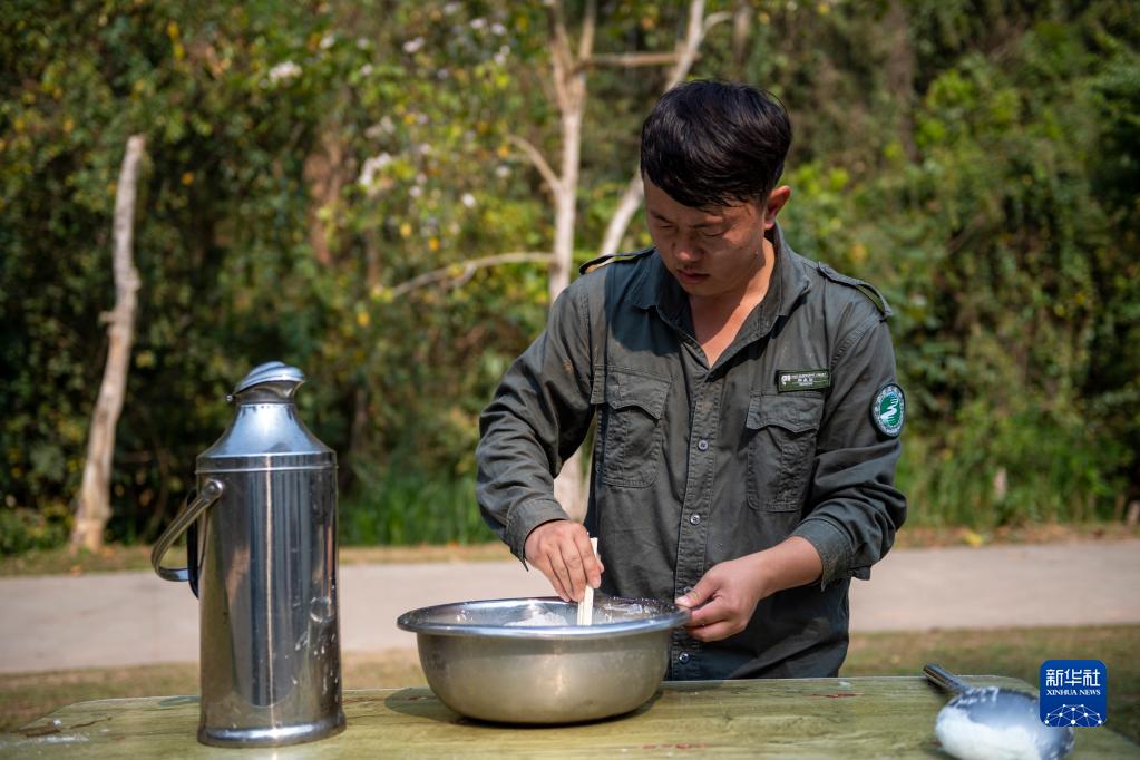 3月15日,许云峰在给“龙龙”冲羊奶粉。