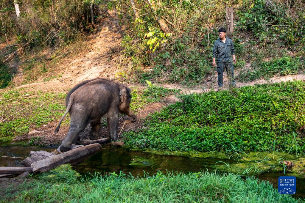 3月15日,“象爸爸”许云峰带“龙龙”进行野化训练。